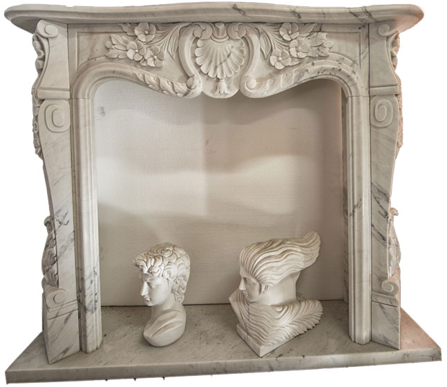 The elegance of the frieze, the English or acanthus composure combined with the sinuosity of the decorations we made on the marble or stone fireplaces featured in our catalog, make these fireplaces unique.